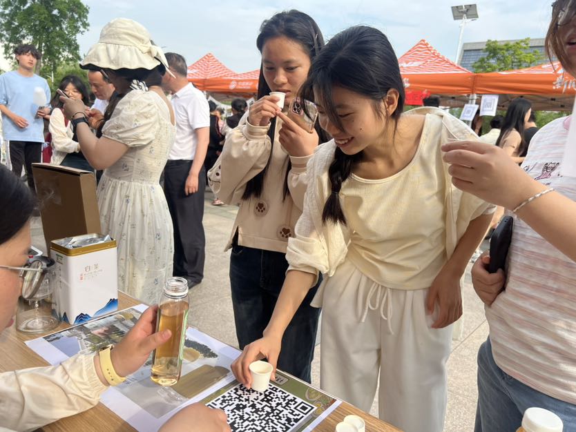 其中,一款“药食同源茶饮”最受欢迎。食品科学与工程学院大学生徐铭泽告诉记者,该茶饮对云南雨雾高山、浙江龙井山脉、河南信阳丘陵等多个优质绿茶产区进行深入比较筛选,遴选出高品质绿茶原叶,并结合多种来自生态环境优良、品质可追溯核心产地的道地药食同源植物原料。“在工艺上,打破传统泡制限制,采用低温冷萃工艺,在低温环境下缓慢释放茶叶与植物中的天然活性物质,最大限度保留其清香与营养。” 徐铭泽表示,这款茶饮还能调节血糖水平、降低血脂含量、改善能量代谢等功能。目前这款茶饮已申请专利,将来会大量生产。