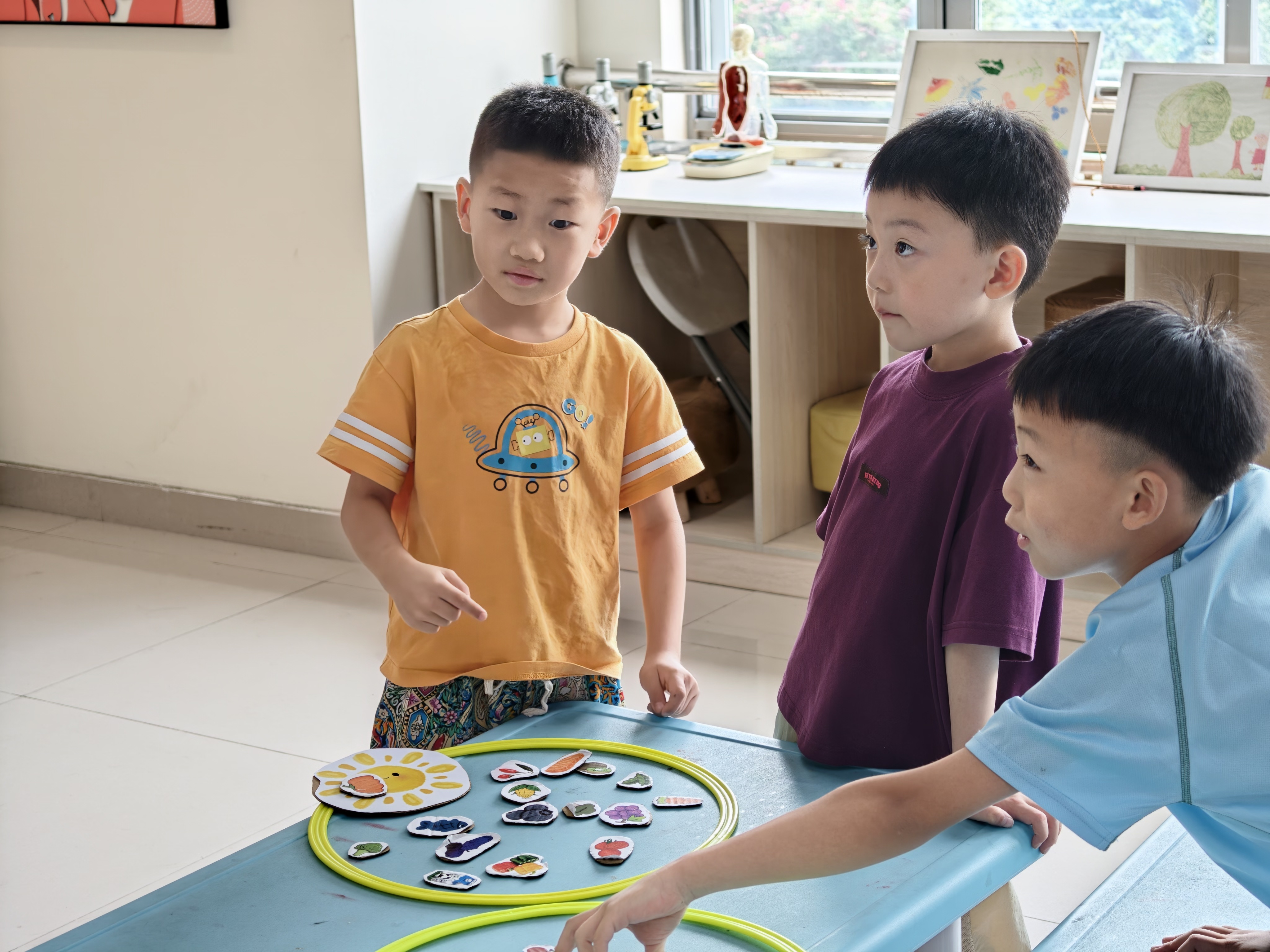 课堂上,实践团的大学生们还介绍了“视力小捣蛋鬼”——薯片、饮料、糖果等零食,它们会偷偷消耗眼睛能量,影响视力健康。为了让孩子们直观区分出这些食物,课堂开展了“能量英雄VS小捣蛋”分类大作战!孩子们踊跃参与,将食物图片分别放入“护眼英雄基地”和“小捣蛋监狱”,在游戏中加深了对护眼食物的认知。