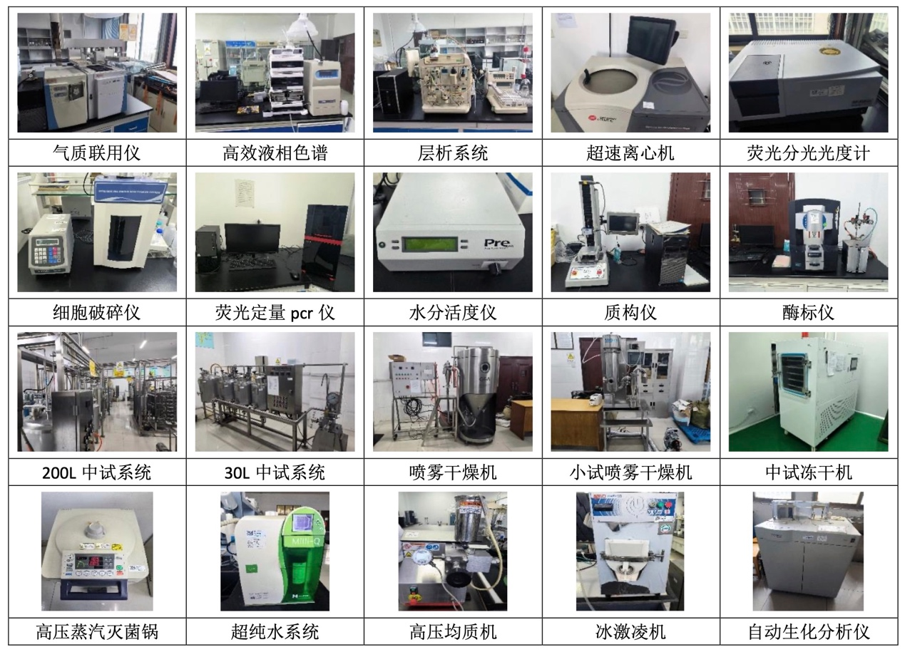 中心现有面积2100 m2,建有乳酸菌资源研究室、分子生物学研究室、乳品发酵研究室、功能乳品研究室、乳品分析与安全控制研究室、动物功能评价研究室、乳品中试车间(包括GMP发酵剂制备室)等,拥有发酵乳中试线、全自动发酵罐、全自动生长曲线仪、高效液相色谱仪、LC-MS及GC-MS等大型仪器设备,原值达3000多万元。