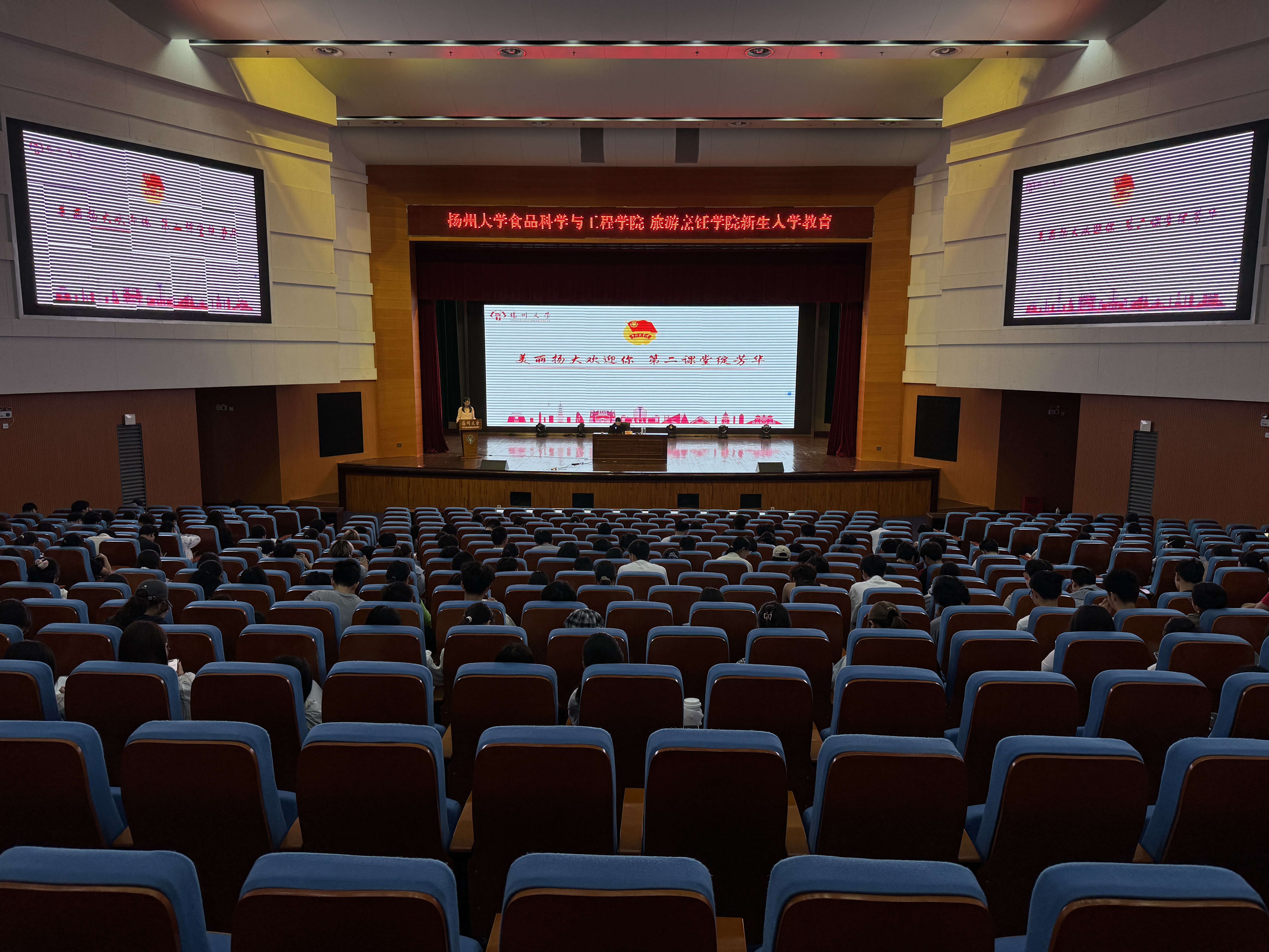 为帮助新生深入了解校园文化活动体系与第二课堂制度,9月21日上午十点,食品科学与工程学院在文体馆三楼小剧场举办2025级新生入学教育第四课——“遇见扬大,邂逅精彩”校园文化活动导航讲座。本次讲座由校团委校园文化与社团管理中心副主任李悦主讲,辅导员杨玥主持。