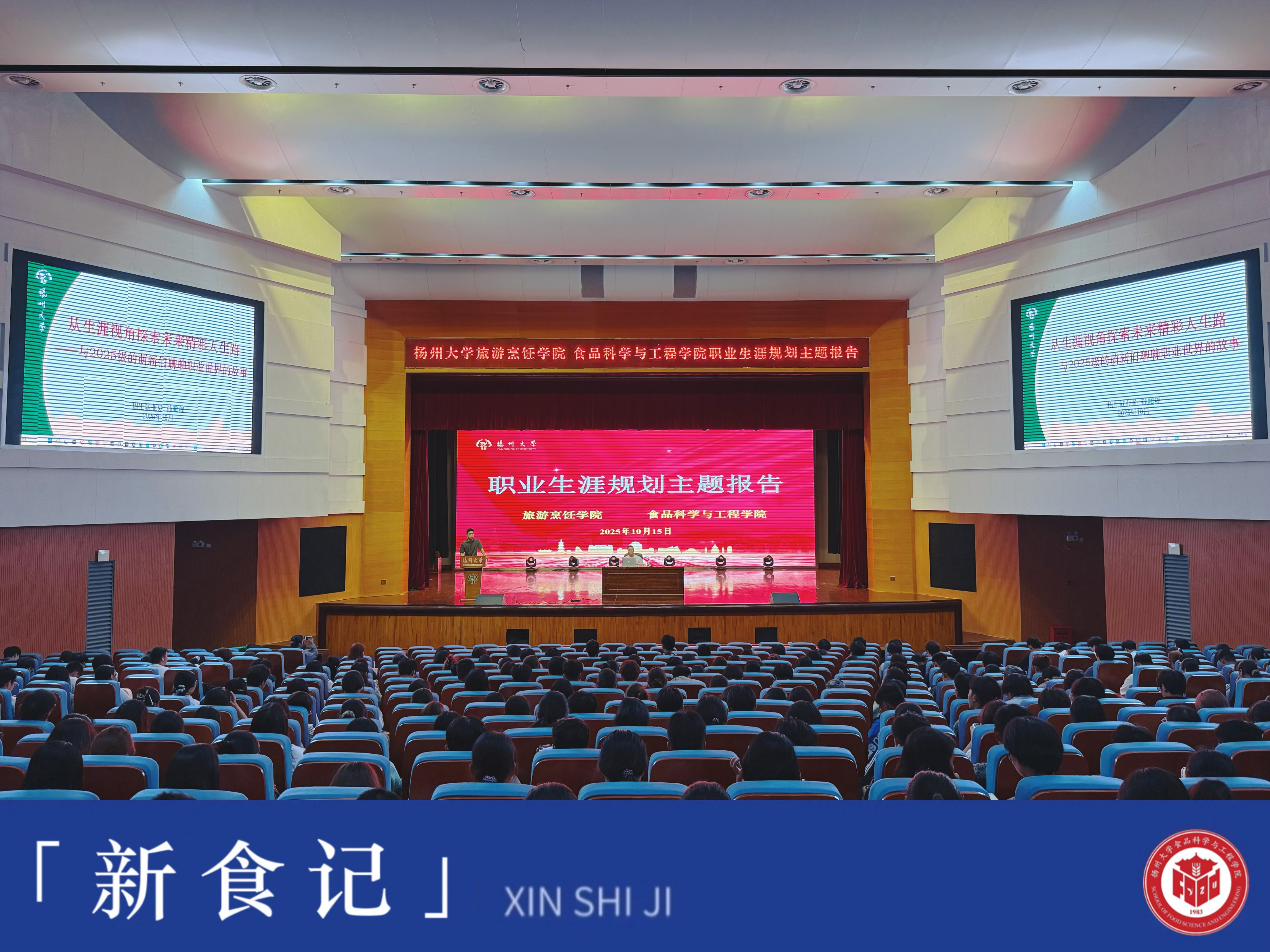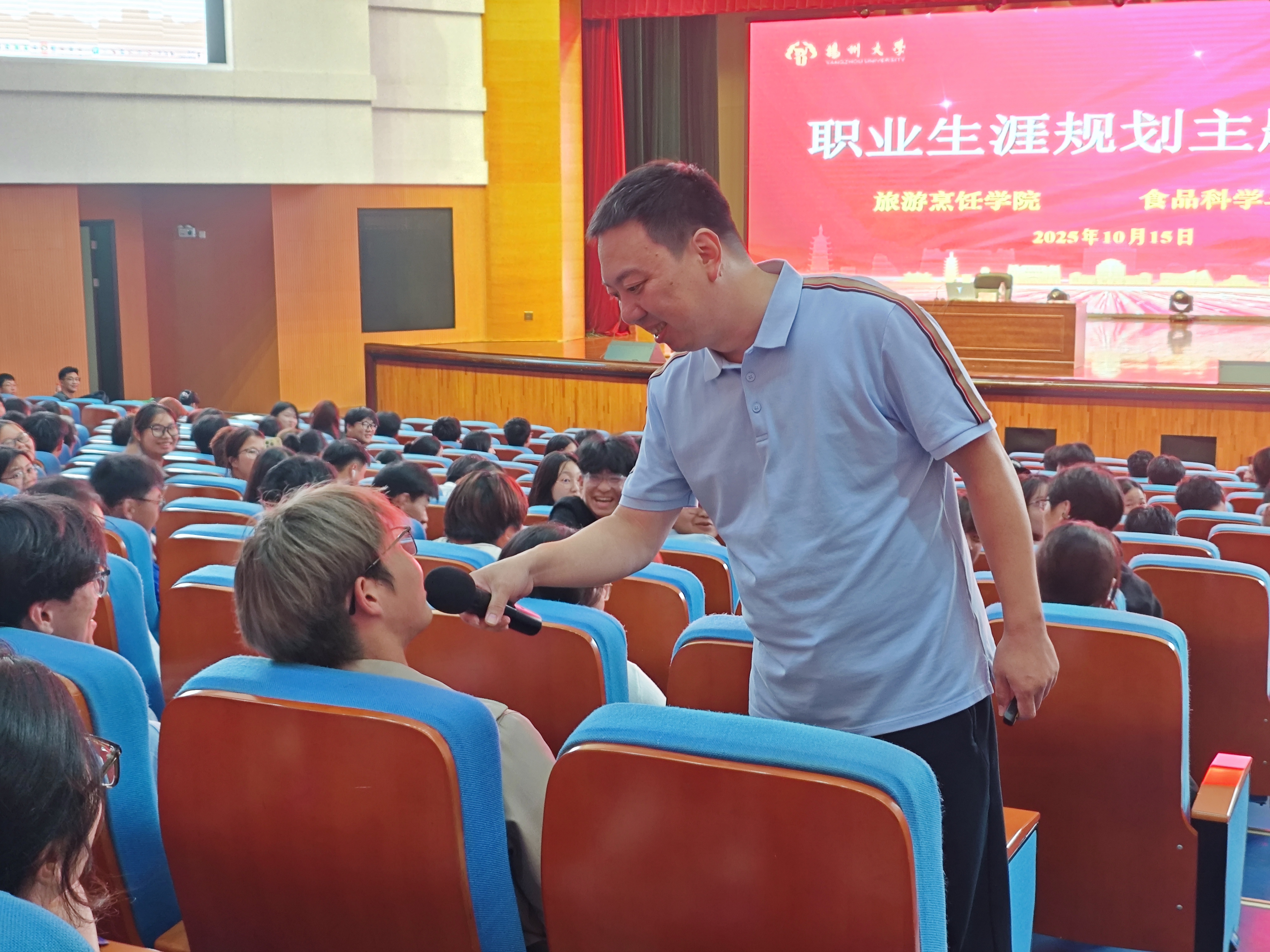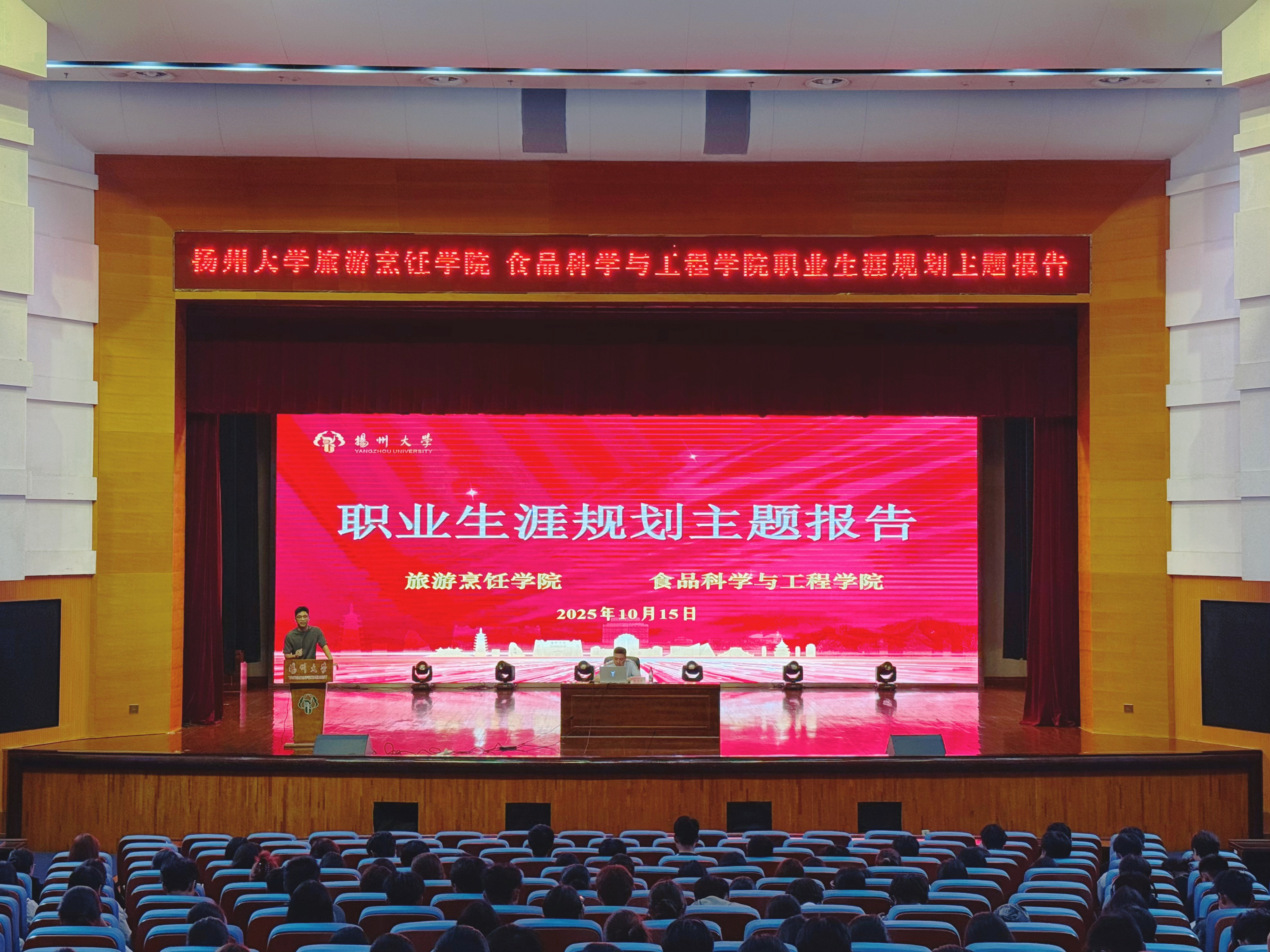 为帮助新生深入了解自己未来的职业生涯规划,10月15日晚上六点二十,食品科学与工程学院、旅游烹饪学院在文体馆三楼报告厅联合举办了2025级新生入学教育第六课——“职业生涯规划”主题讲座。本次讲座特邀扬州大学招生就业处孙鹏程老师担任主讲,由旅游烹饪学院团委书记徐华林主持。