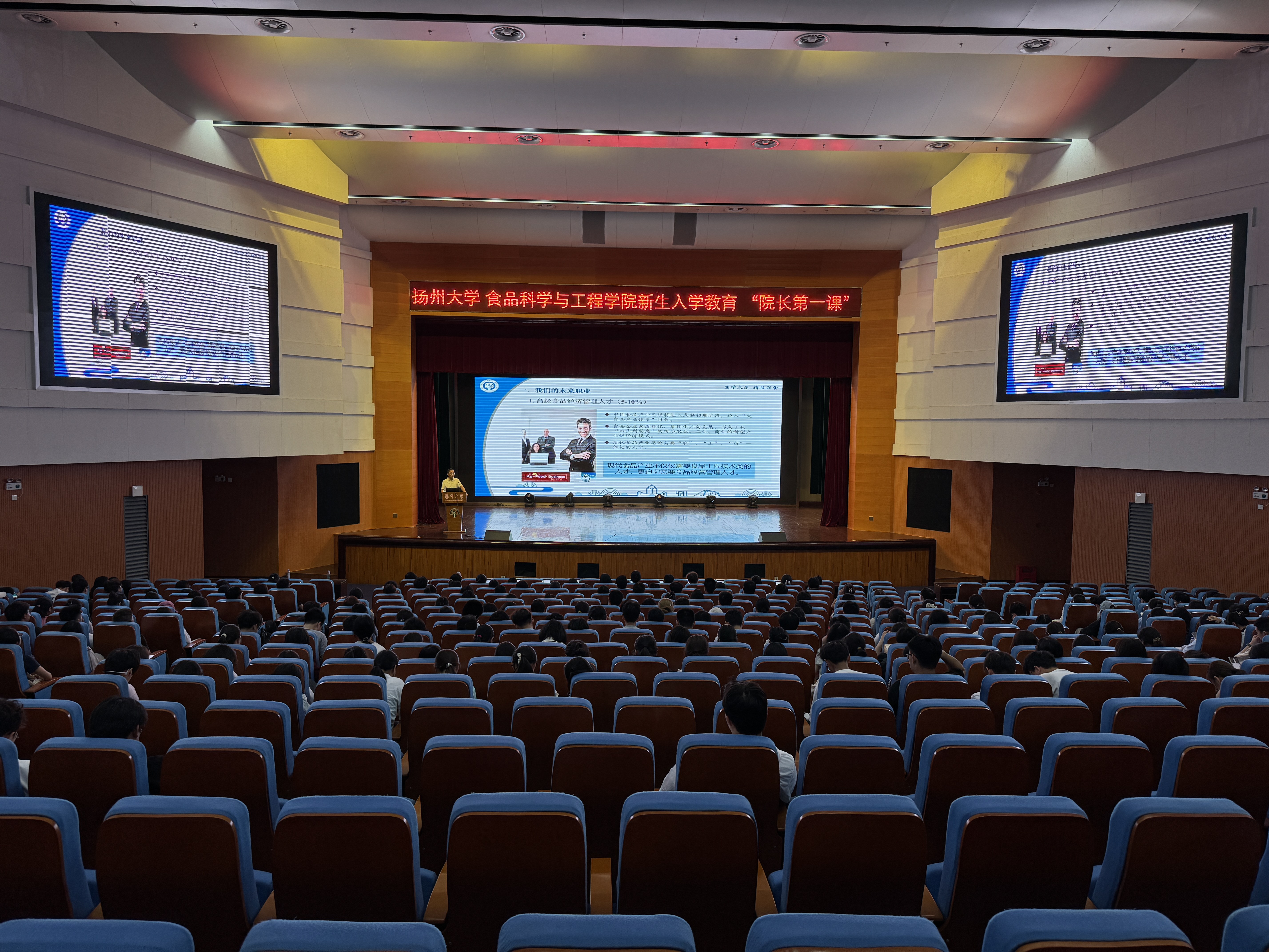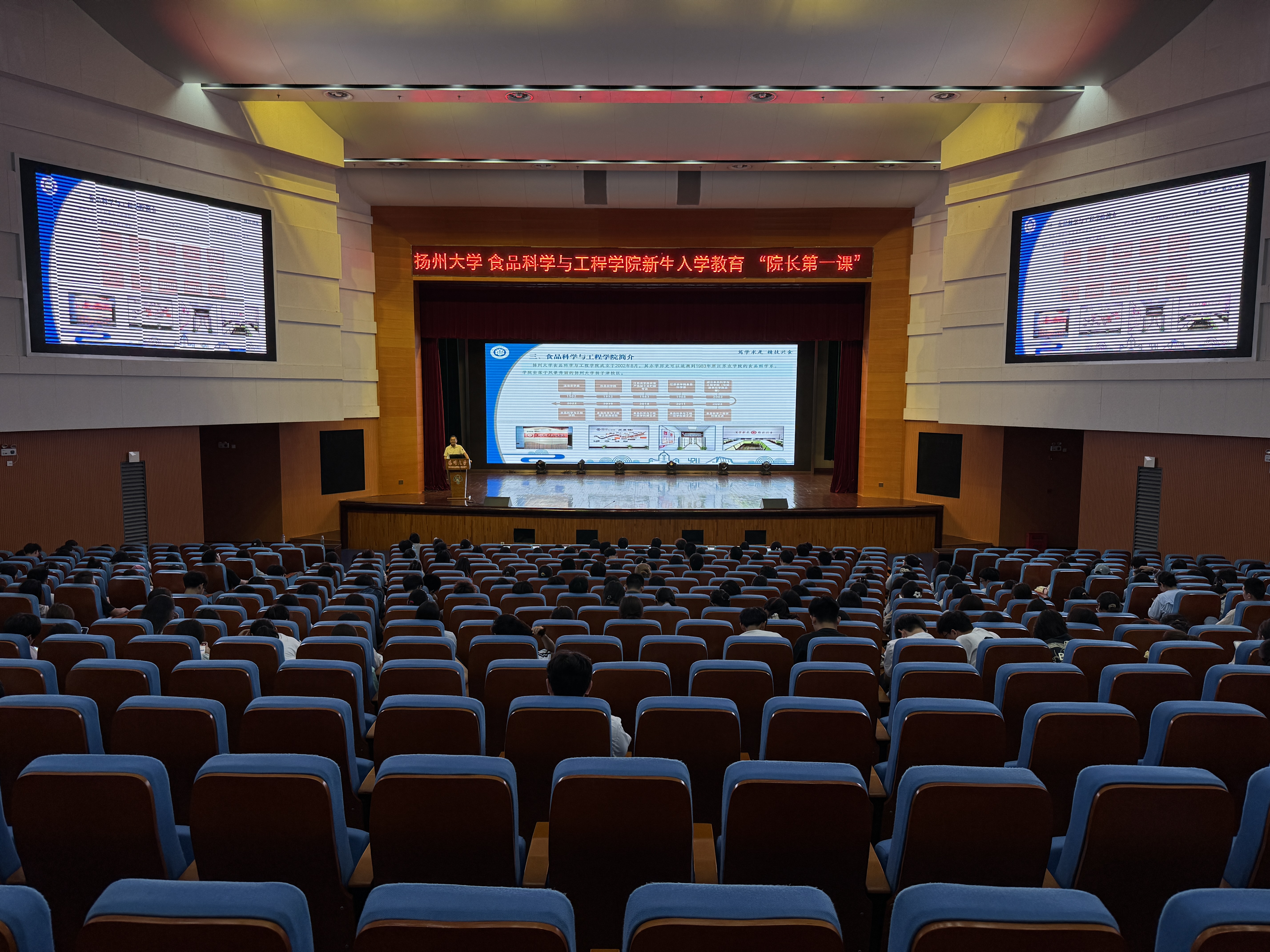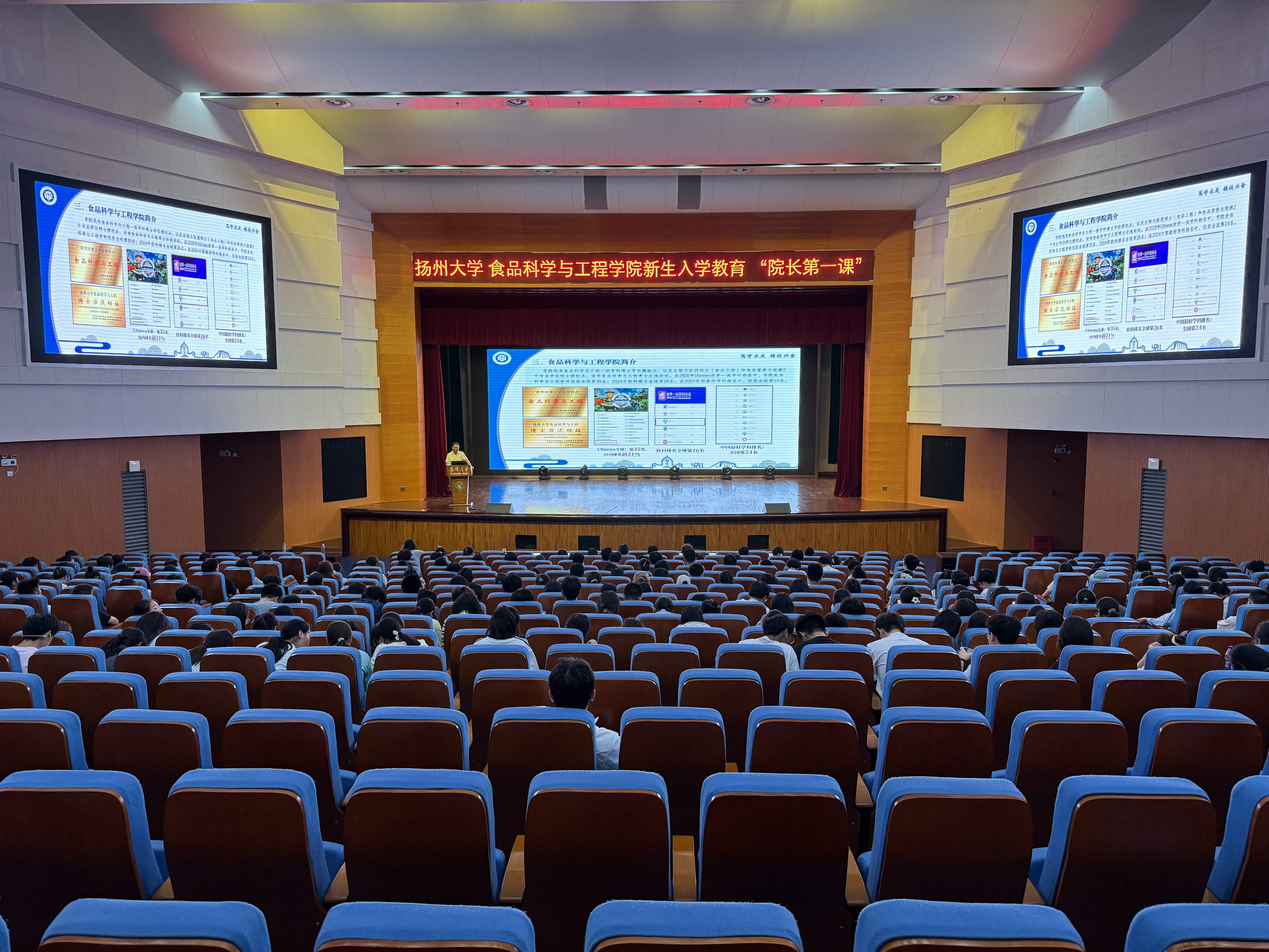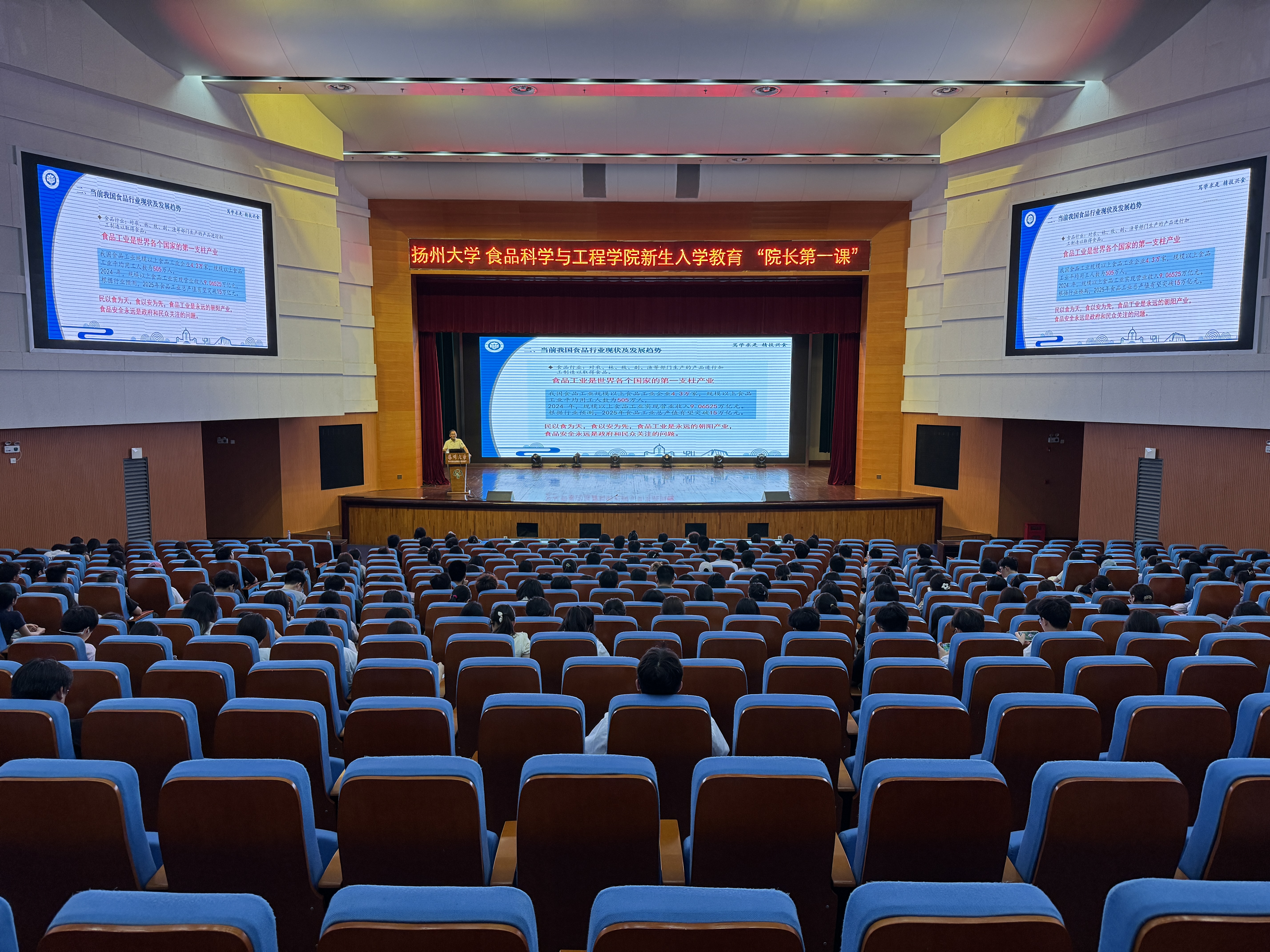 2025年9月17日下午16:15,食品科学与工程学院2025级新生入学教育“院长第一课”在文体馆报告厅隆重开讲。学院党委副书记杨晶主持,院长杨振泉教授主讲,2025级全体新生参与学习。