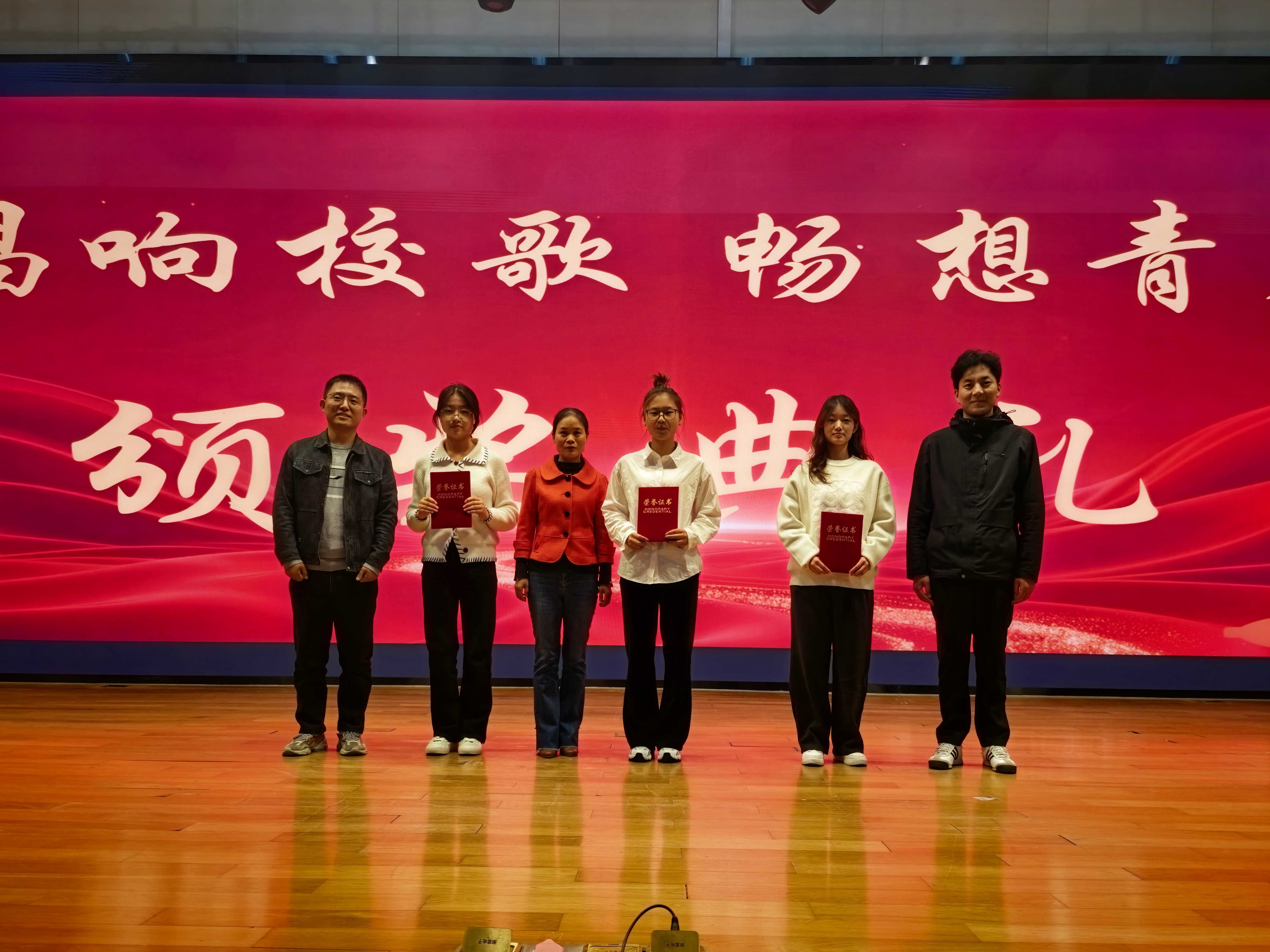 步入决赛的班级各展所长,有的排练创意队形,有的增加生动朗诵。他们用严谨的态度打磨歌声,用饱满的热情诠释校歌内涵,用嘹亮的歌声与扬大赴约,演唱得精彩绝伦。在最终结果揭晓前,三场才艺表演点燃全场氛围:食工2502班的龚婷和食工2501班的赵欣怡演唱《说爱你》,用歌声传递青涩悸动;食工2502班的卢嘉用唢呐演奏《大哉乾元》,带来一场震撼的视听盛宴;食工2501班的徐辰熙献唱《鼓楼》,带我们感受岁月里的温柔。