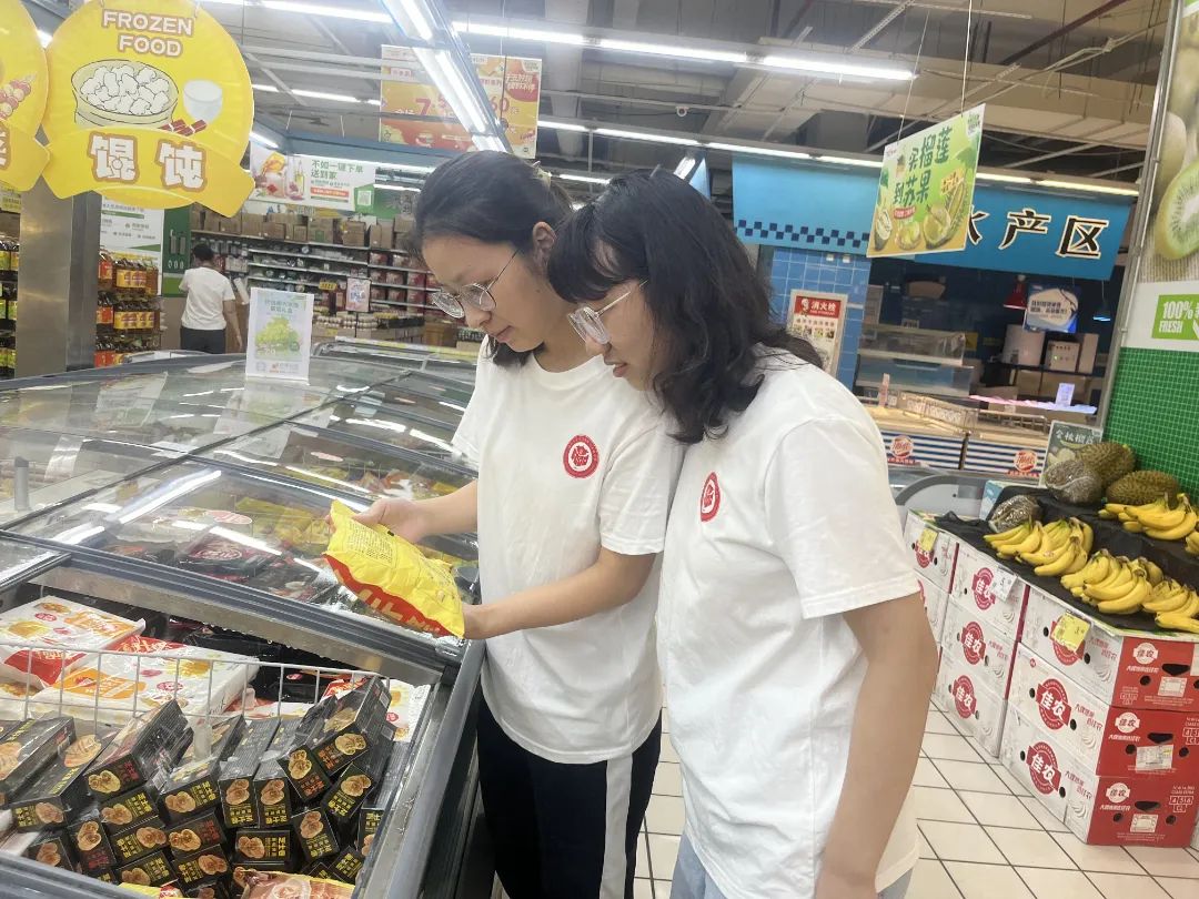 (7月14日,团队成员朱滢睿正在记录预制菜的原产地及原材料。潘婧雯供图。)