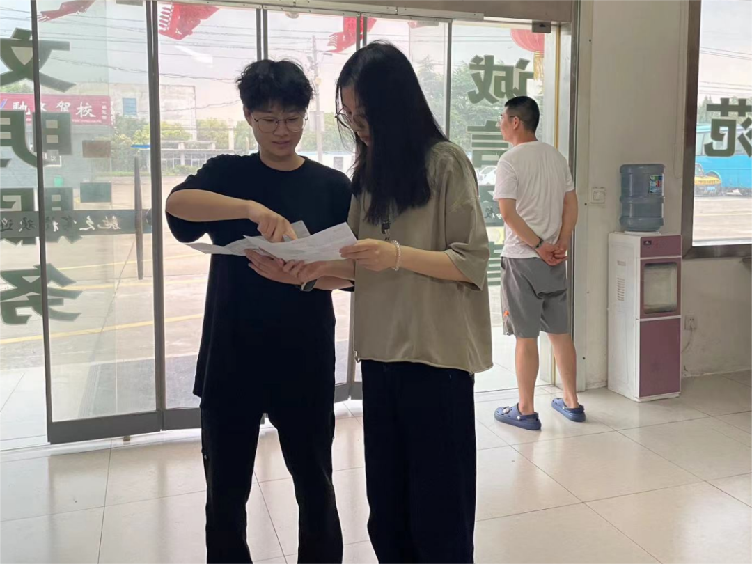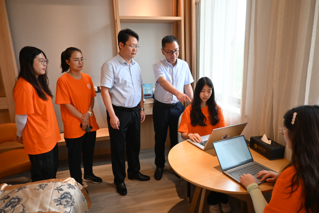 (图为7月12日,杨振泉教授和葛副书记为团队成员进行工作指导。胡美霞 供图)