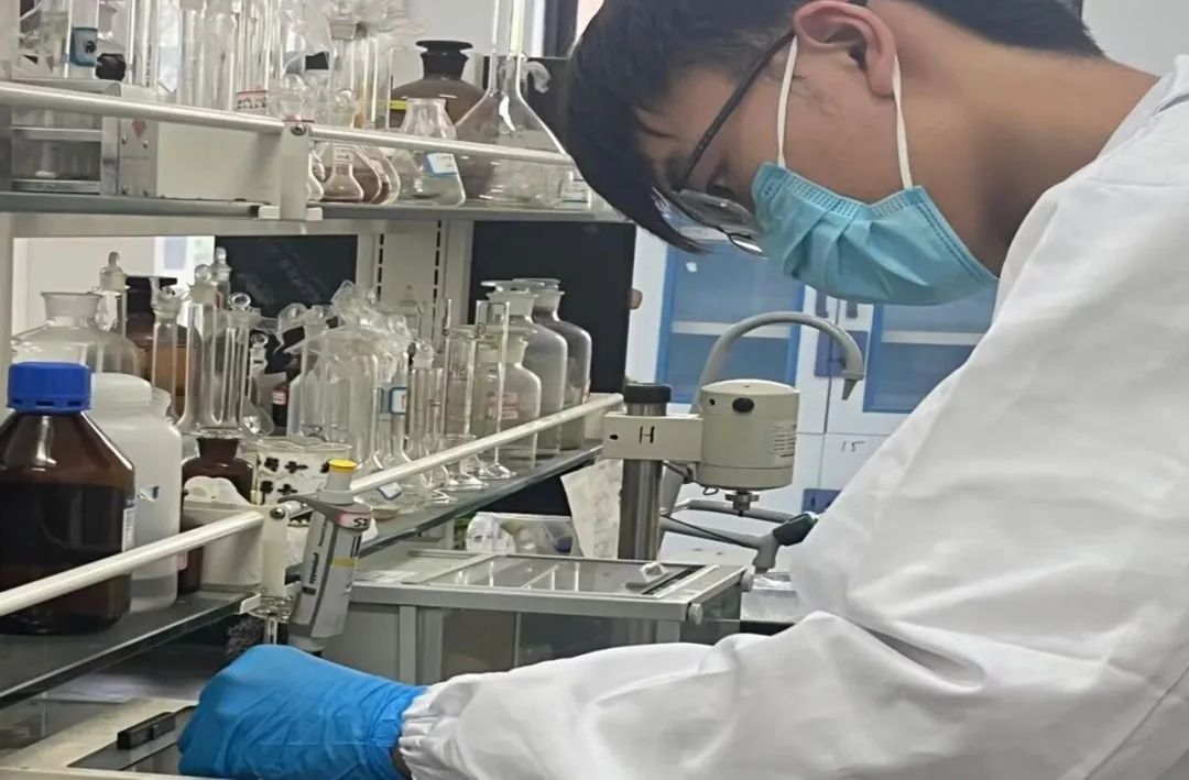 (图为7月1日真“酶”好成员刘轩卓在实验室进行废油转化实验。刘柏麟供图)