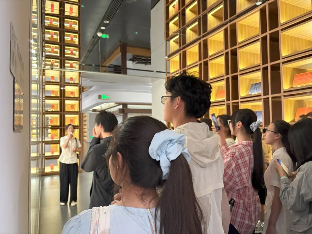 随后,同学们走进扬州非遗珍宝馆。在这里,“版上山河——雕版印刷技艺”展览生动展现了这项世界级非物质文化遗产的魅力。同时,扬州漆器装饰技艺的巧夺天工、玉雕精品的匠心独运、剪纸技术的百花齐放,每一项非遗技艺都传递出扬州工匠精神的极致追求,也让同学们感受到了传统技艺在当代的生命力。