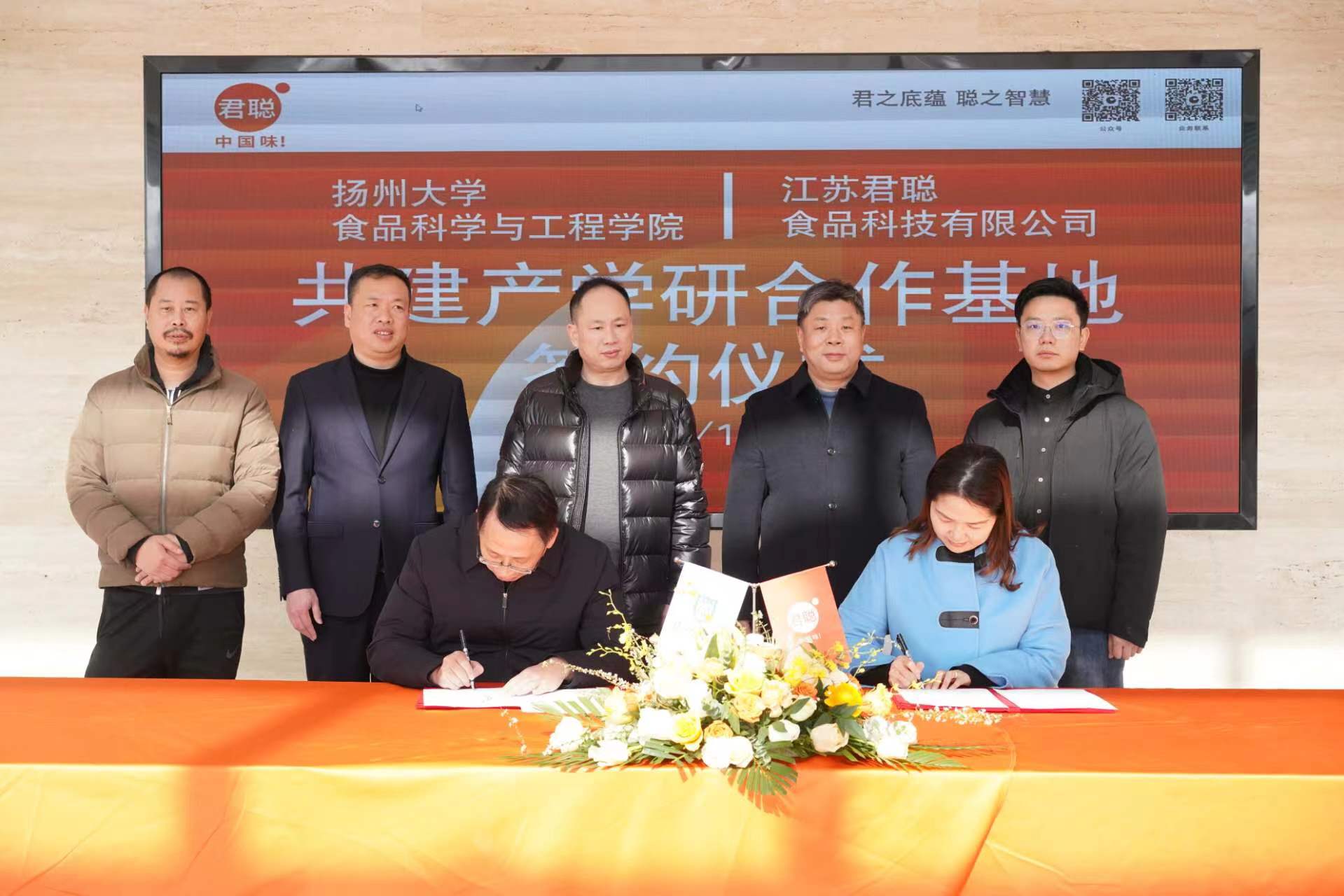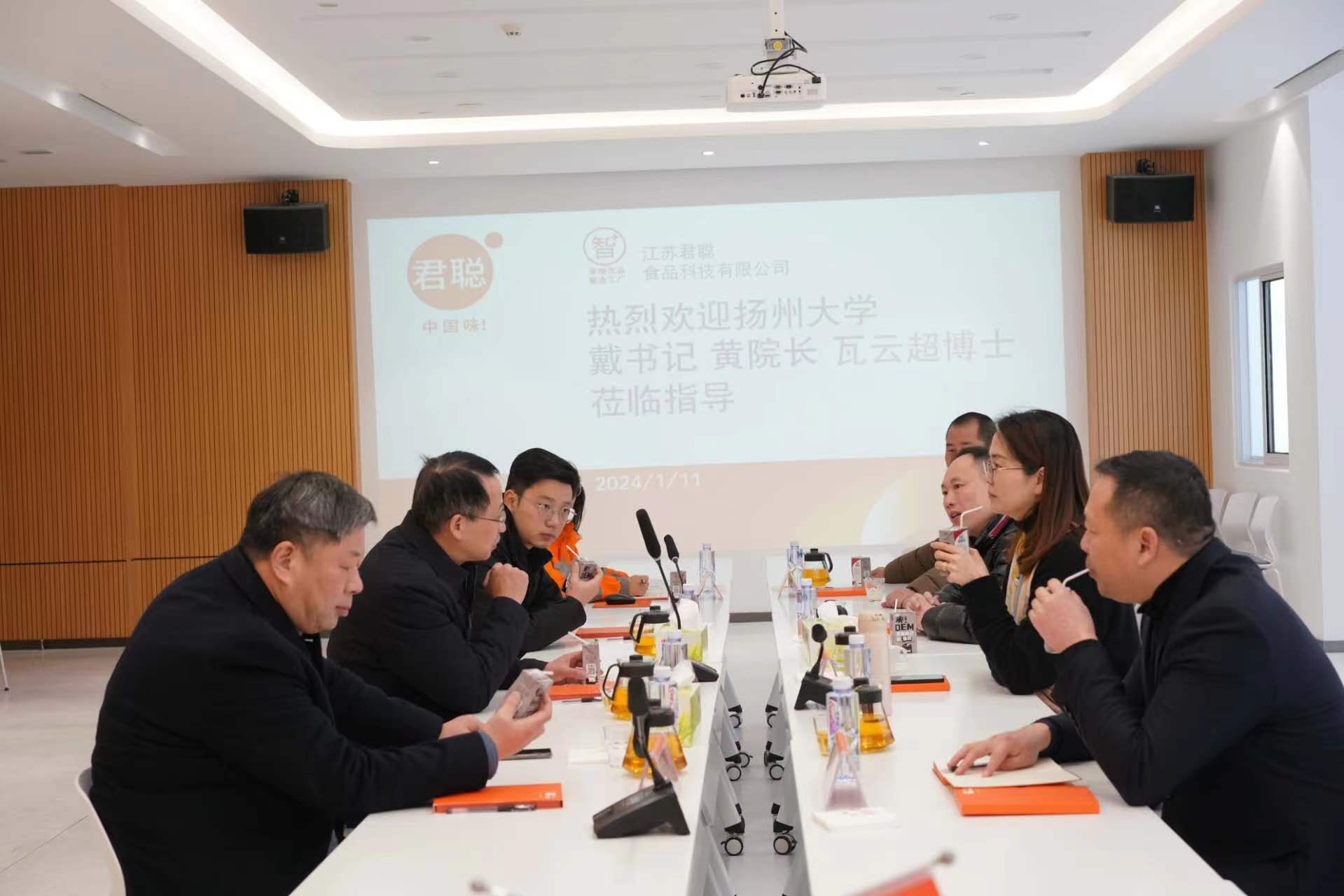 1月11日,院党委书记戴世勇一行赴江苏君聪食品科技有限公司考察调研,并与该公司签署产学研合作协议。江苏君聪食品科技有限公司董事长郭莉君、总经理董流聪等公司高管,副院长黄玉军以及食品质量与安全教研室瓦云超老师参加相关活动。