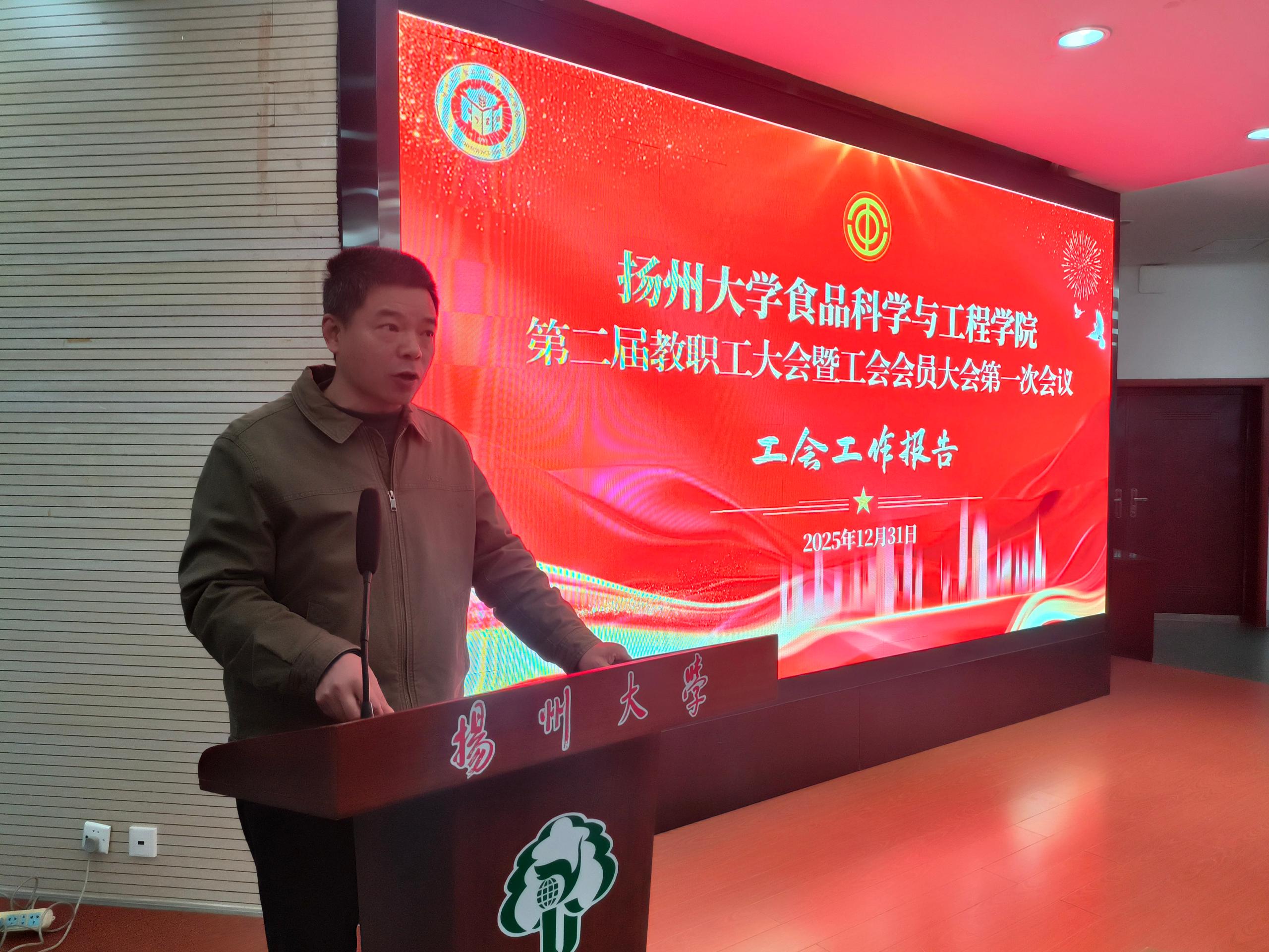 葛庆丰在工会工作报告中指出,第一届工会委员会围绕学院中心工作,认真履行职能,积极推进“六家”建设,通过劳模分享、岗位练兵、文体活动等形式凝聚教职工,累计慰问教职工六十余人次,提交教代会提案3件。报告同时汇报了工会经费收支情况,分析了当前不足并对新一届工会工作提出建议。