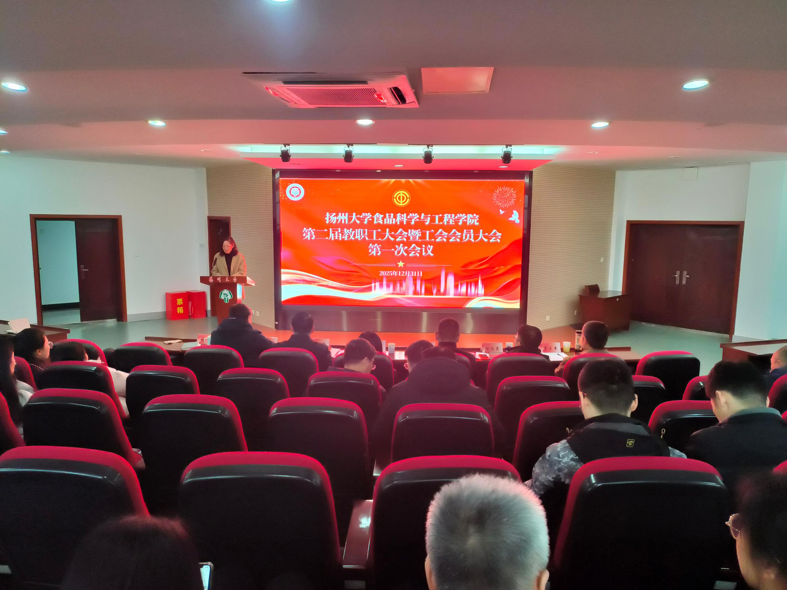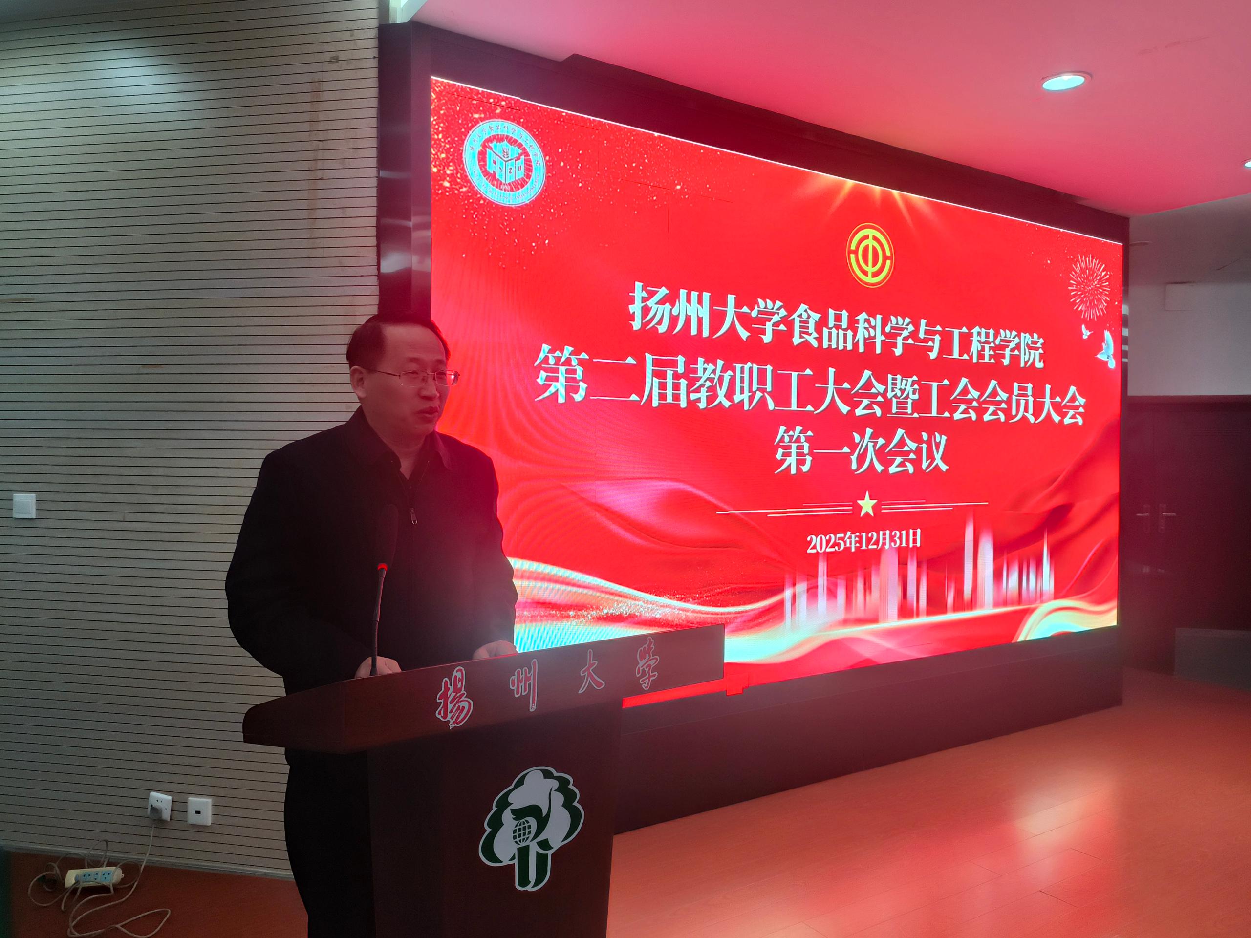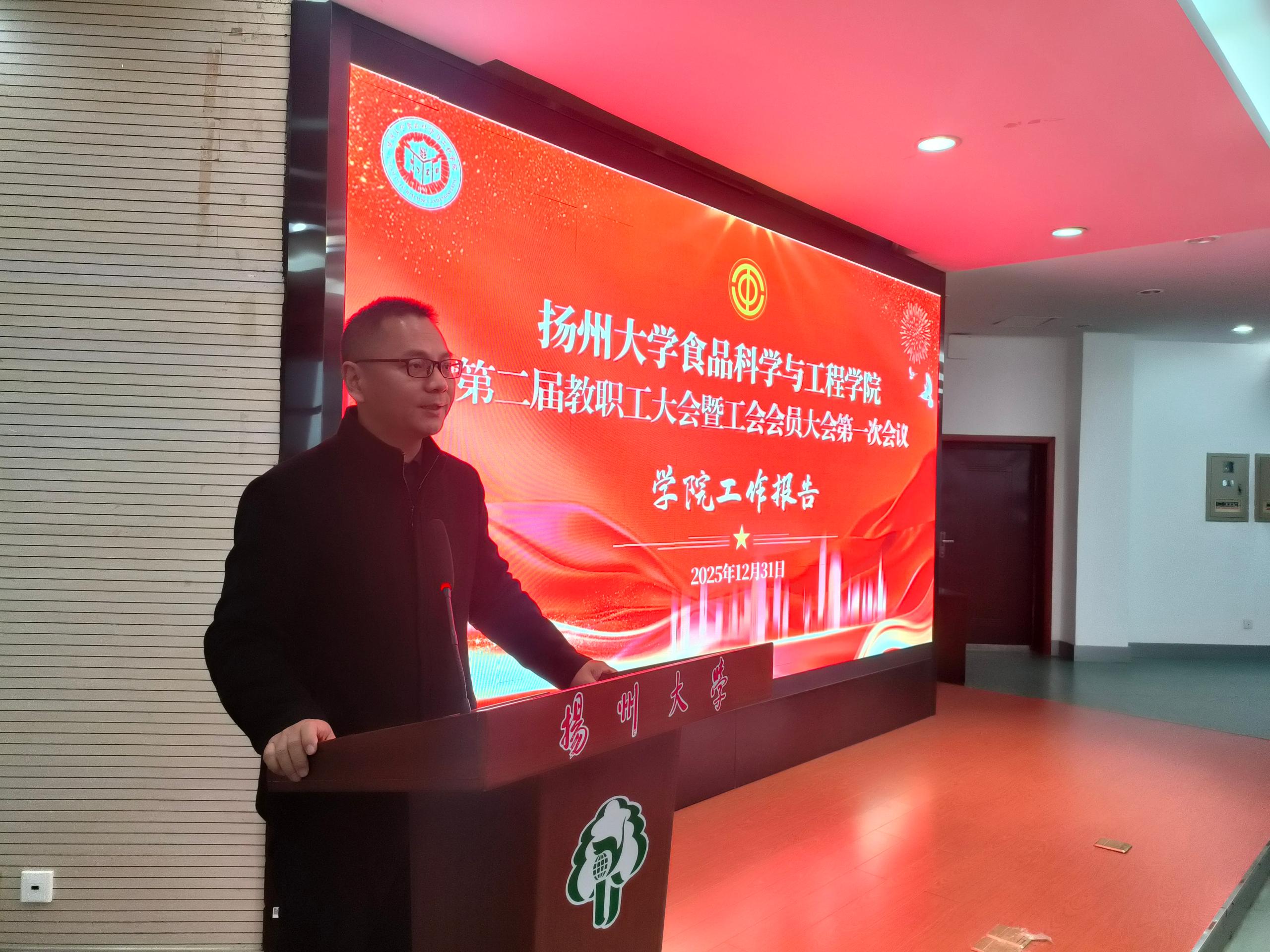 12月31日,学院第二届教职工大会暨工会会员大会第一次会议在笃行楼N302报告厅隆重举行。校工会主席洪岑出席会议并致辞,院党委书记戴世勇作总结讲话,院长杨振泉作学院工作报告,院工会主席葛庆丰作工会工作报告。院党委副书记杨晶主持会议,学院全体教职工和工会会员参加会议。