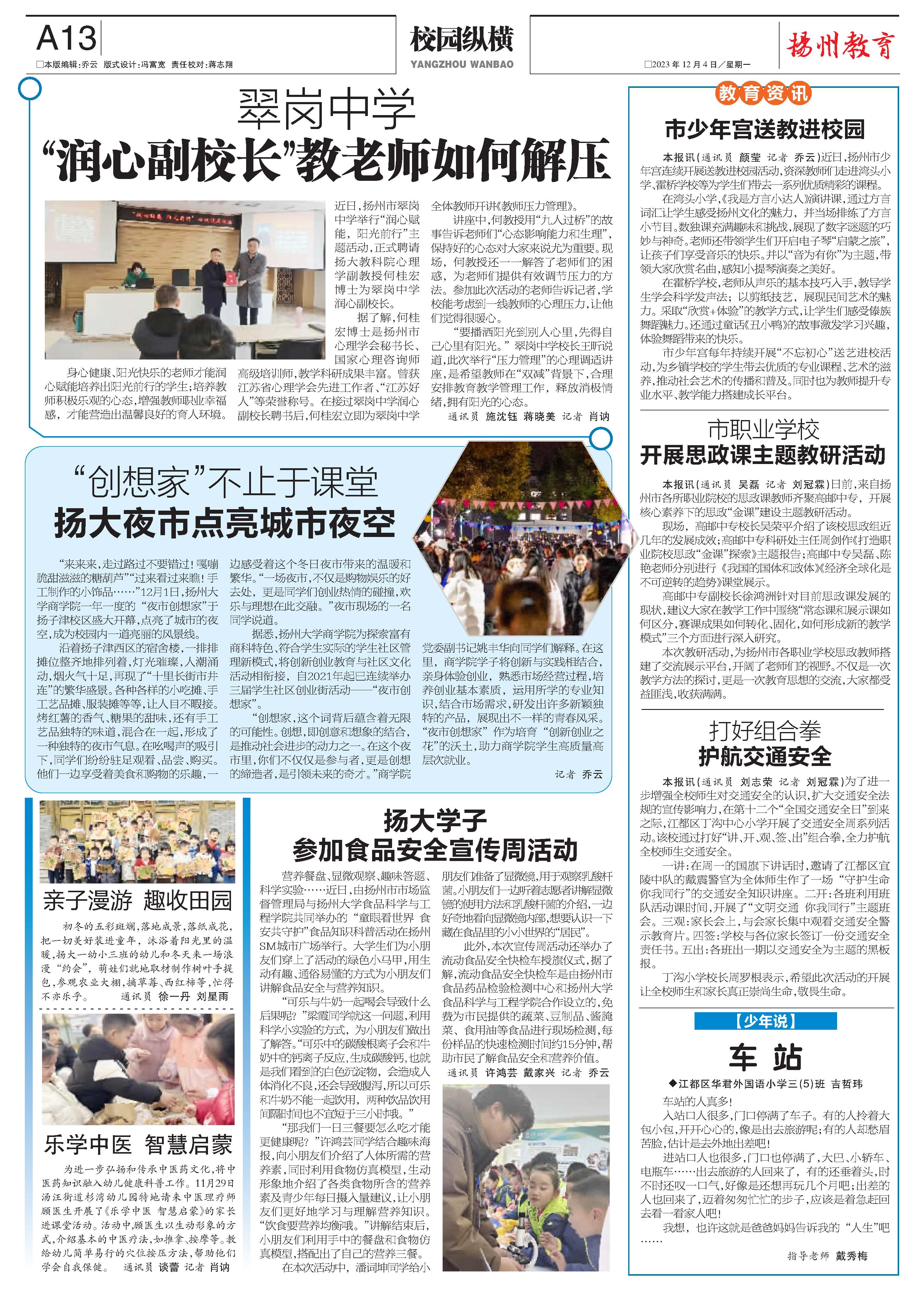营养餐盘、显微观察、趣味答题、科学实验……近日,由扬州市市场监督管理局与扬州大学食品科学与工程学院共同举办的“童眼看世界食安共守护”食品知识科普活动在扬州SM城市广场举行。大学生们为小朋友们穿上了活动的绿色小马甲,用生动有趣、通俗易懂的方式为小朋友们讲解食品安全与营养知识。